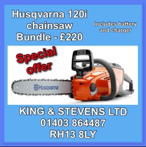 LAST ONE REMAINING – WHEN IT’S GONE, IT’S GONE!!Lightweight, easy to use battery chainsaw ideal for felling small trees and pruning or cutting small branches. Features an intuitive keypad for safe, convenient starting, while the inertia chain brake ensures trouble-free handling. Brushless motor with savE™ mode for reliable performance and longer running time, no direct emissions, while low noise levels allow you to work in residential areas without disturbing the neighbours. £220 including VAT, battery and charger.